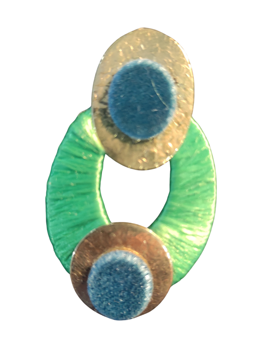 Una joya única de metal laminado liso y matizado, sin níquel, adornada con detalles de terciopelo.